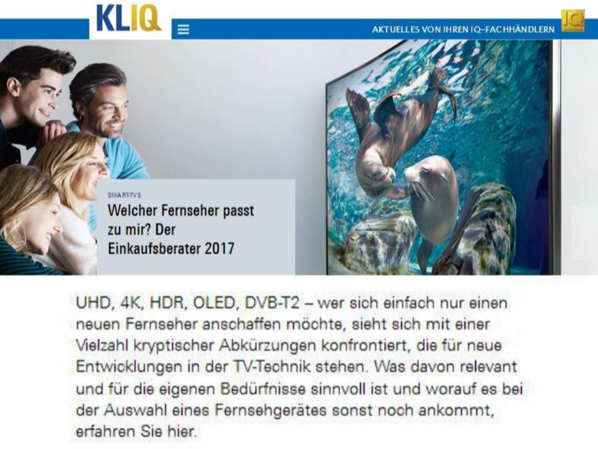 Mit unserer Website www.kliq.de wollen wir Ihnen hier Orientierungshilfe geben. Denn wir kennen uns mit der neuen Technik nicht nur bestens aus. Aufgrund unserer Erfahrung können wir auch einschätzen, welche Trends wirklich Zukunft haben. Deshalb empfehlen wir Ihnen auch nur solche Dinge, von deren Qualität und Nutzen wir selbst überzeugt sind. Schließlich stehen wir tagtäglich und persönlich in unserem IQ-Fachgeschäft und wollen Ihnen, unseren Kunden, jederzeit mit gutem Gewissen in die Augen sehen.